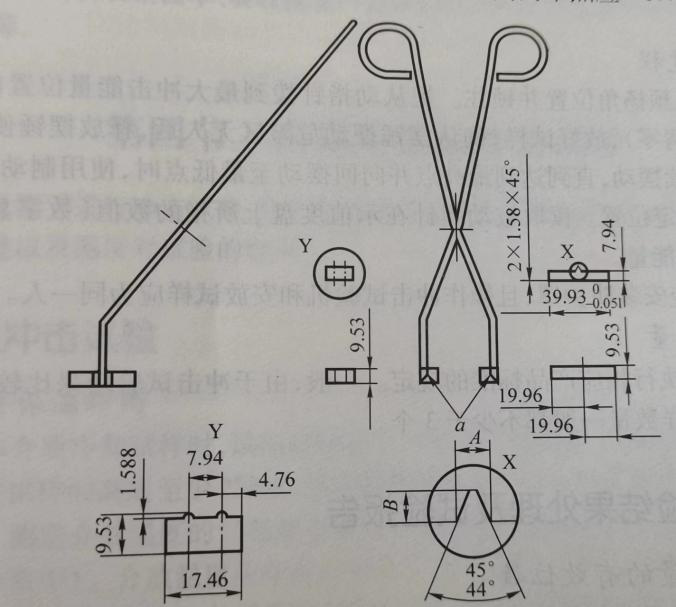 為了消除試樣與砧座間的明顯間隙,防止斷樣與支座相互作用,可用類似于圖1所示的V形缺口自動對中鉗將試樣從控溫介質中移至并緊貼試驗機砧座放置,并使錘刃沿缺對稱面打擊試樣缺口的背面,試樣缺口對稱面偏離兩砧座間的中點應≤0.5mm